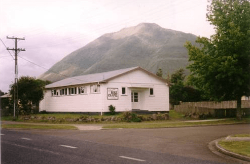 Treasury 1960 states: “due to the foresight of the Bay of Plenty Assemblies, a Gospel Hall had already been built and Gospel meetings and a Sunday School commenced. Christian work in this town has proved most difficult. Most of the population are shift workers and are required to be on shift most Sundays.”